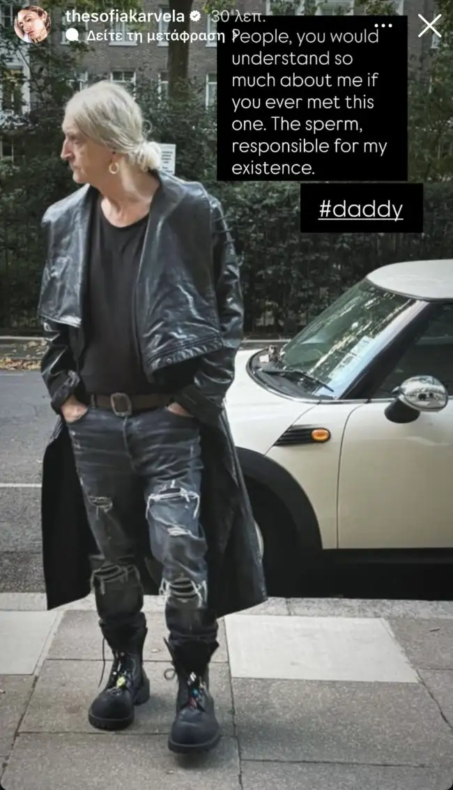 Έτσι, το βράδυ της Τετάρτης (27/8) η Σοφία Καρβέλα ανέβασε μία φωτογραφία του πατέρα της σε Insta-story του προσωπικού της λογαριασμού, γράφοντας χαρακτηριστικά ως σχόλιο:
