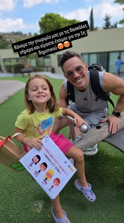 - Χθες το πρωί (8/9), ο άρχοντας των κρίκων ανάρτησε μια φωτογραφία στο Instagram, όπου ποζάρει χαμογελαστός δίπλα στην κόρη του, στον προαύλιο χώρο του σχολείου της, λίγο πριν την επίσημη έναρξη της σχολικής χρονιάς.