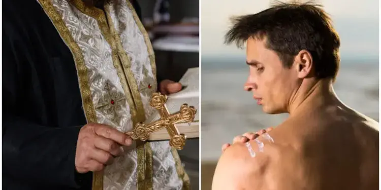 Εκεί, κατά τον Εσθονό, ο εφημέριος του ζήτησε να κατεβάσει το παντελόνι του, το εσώρουχό του και να βγάλει τη μπλούζα του για να τον αλείψει με λάδι. Τότε, όπως υποστήριξε, άρχισε να τον αλείφει στα γεννητικά του όργανα με λάδι και μόνο εκεί για μερικά δευτερόλεπτα. Ο αλλοδαπός μηνυτής, όπως υποστήριξε, πιστεύοντας ότι επρόκειτο για μια συνήθη διαδικασία δεν του ζήτησε να σταματήσει και στην πορεία υπέβαλε την μήνυση.