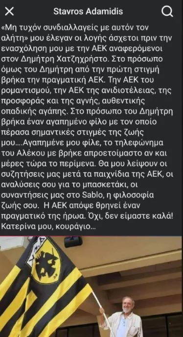 Ο πρώην πρόεδρος της Ερασιτεχνικής ΑΕΚ αντιμετώπιζε τα τελευταία σοβαρά προβλήματα υγείας, με τους οπαδούς των «κιτρινόμαυρων» να βρίσκονται συνεχώς στο πλευρό του.