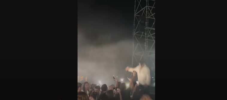 Κάποια στιγμή περπατώντας στο stage δεν είδε το κενό και έπεσε με κρότο κάτω απο την σκηνή στο έδαφος. Όπως θα ακούσετε και θα δείτε στο βίντεο παρακάτω οι παρευρισκόμενοι τρόμαξαν πολύ με την εξέλιξη.