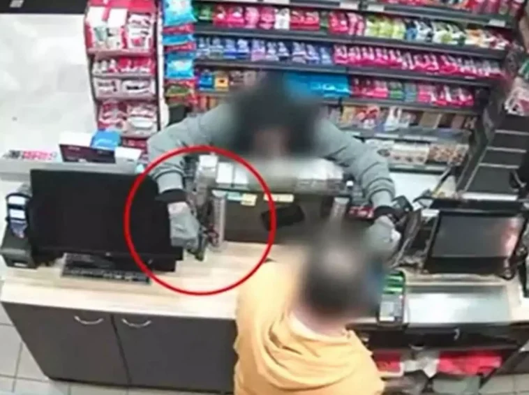 Η ληστεία με απειλή όπλου σημειώθηκε σε ψιλικατζίδικο στην περιοχή της Χαριλάου στη Θεσσαλονίκη τα ξημερώματα της Κυριακής 24 Μαρτίου. Όπως φαίνεται και στο βίντεο που εξασφάλισε ο τηλεοπτικός σταθμός OPEN, ο ένας από τους δύο δράστες σημαδεύει τον υπάλληλο του καταστήματος με όπλο, ζητώντας του να αδειάσει το ταμείο.