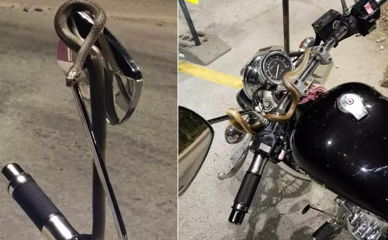 Στιγμές τρόμου για οδηγό μηχανής στην Ηγουμενίτσα από ένα φίδι που τυλίχτηκε στο τιμόνι. Το ερπετό, δεν είχε γίνει αντιληπτό αρχικά από τον μοτοσικλετιστή, που ευτυχώς κατάφερε να διατηρήσει την ψυχραιμία του.