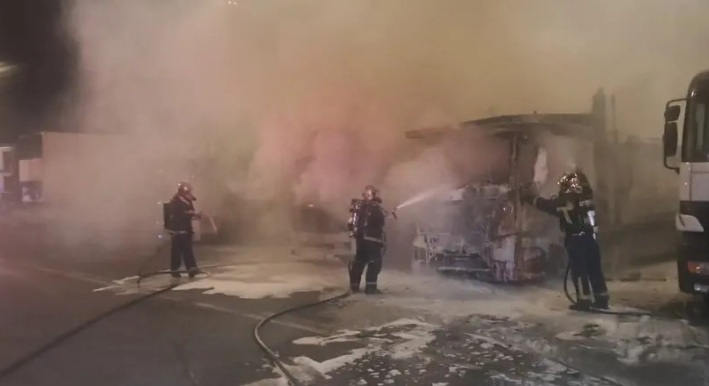Η φωτιά τέθηκε άμεσα υπό έλεγχο, χωρίς να επεκταθεί σε διπλανές νταλίκες.
