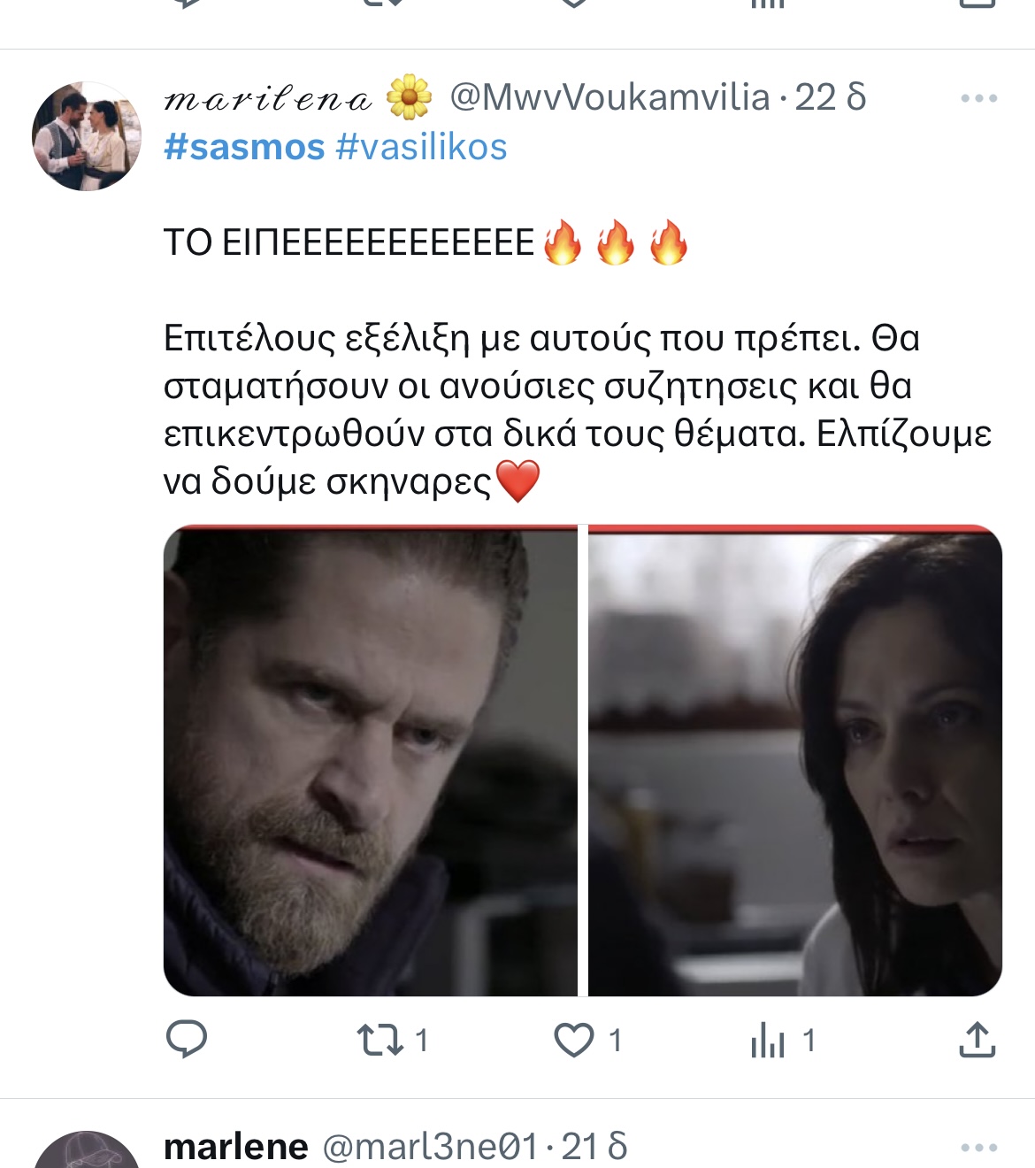 Τον Μαθιό να λέει επιτέλους την Βασιλική πως εκείνος σκότωσε τον άντρα της. Όλοι περιμένουν το επεισόδιο της Δευτέρας ενώ το Twitter πήρε φωτιά. Οι περισσότεροι δηλώνουν σοκαρισμένοι με την σκηνή που είδαν και υπερθεματίζουν.
