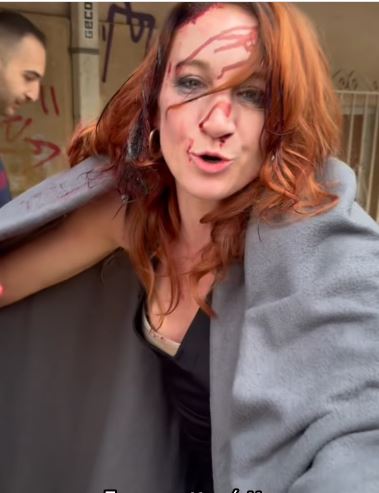 - Όπως βλέπετε, η μακιγιέζ έχει κάνει εξαιρετική δουλειά και η ηθοποιός φαίνεται πραγματικά σαν να έχει χτυπήσει στ’ αλήθεια, με το πρόσωπό της γεμάτο αίματα.