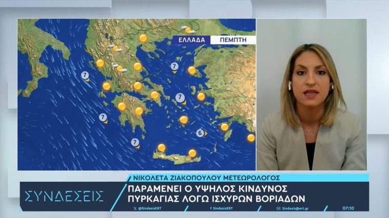 Για την ένταση των ανέμων και για το χάρτη επικινδυνότητας πυρκαγιών μίλησε στην εκπομπή «Συνδέσεις» του ΕΡΤNews, η μετεωρολόγος της ΕΡΤ Νικολέτα Ζιακοπούλου.