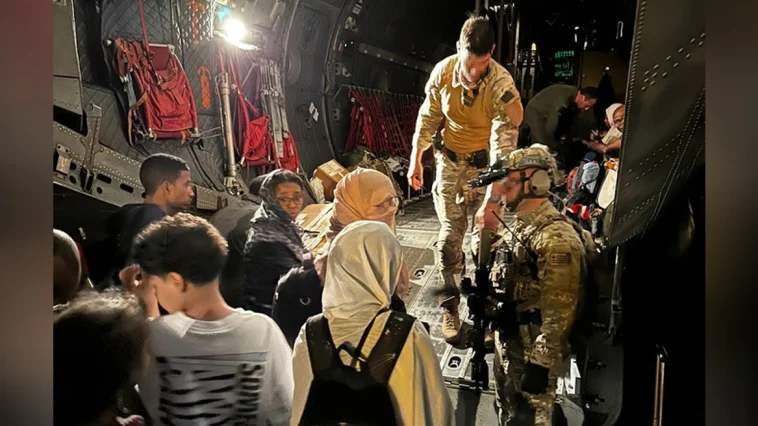 Την Πέμπτη 27 Απριλίου, απογειώθηκε από το Αεροδρόμιο Ασουάν (Aswan) της Αιγύπτου Α/Φ C-130 με προσωπικό Ειδικών Επιχειρήσεων (SOF) της ΔΕΠ του ΓΕΕΘΑ και προορισμό την Αεροπορική Βάση Wadi Seidna βόρεια του Χαρτούμ (Khartoum) στο Σουδάν. Με την προσγείωση του Α/Φ στην Αεροπορική Βάση, το τμήμα SOF προέβη σε έλεγχο και εξασφάλιση της ευρύτερης περιοχής, ενώ παράλληλα συνέδραμε στην διάσωση και επιβίβαση στο Α/Φ 39 πολιτών εκ των οποίων 20 από Ελλάδα, 1 από Γερμανία, 4 από Ισπανία, 5 από Ολλανδία, 1 από Σερβία, 8 από Φιλιππίνες, καθώς και 6 κατοικίδια (σκύλοι). Στην συνέχεια, το Α/Φ απογειώθηκε με προορισμό την Αεροπορική Βάση Ελευσίνας. Την εξέλιξη της επιχείρησης εκκένωσης και διάσωσης παρακολούθησαν και κατεύθυναν ζωντανά από το ΕΘΚΕΠΙΧ ο Υφυπουργός Εθνικής Άμυνας κ. Νικόλαος Χαρδαλιάς και ο Αρχηγός ΓΕΕΘΑ Στρατηγός Κωνσταντίνος Φλώρος.