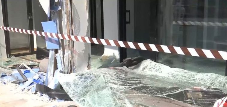 Το αυτοκίνητο, μετατράπηκε σε μία άμορφη μάζα σιδερικών, ενώ η τζαμαρία του μαγαζιού διαλύθηκε.