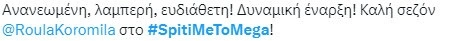 Το πιο φιλόξενο σπίτι της ελληνικής τηλεόρασης ανοίγει τις πόρτες του ξανά. Το «Σπίτι με το MEGA», η αγαπημένη μουσική συνήθεια που γέμισε τα βράδια μας με τραγούδια και μελωδίες σπουδαίων δημιουργών και ερμηνευτών του ελληνικού πενταγράμμου επέστρεψε.Η Ρούλα Κορομηλά και ο Μιχάλης Χατζηγιάννης σε μια ξεχωριστή συνύπαρξη μάς χαρίζουν μοναδικές στιγμές αυθορμητισμού, κεφιού, χορού και τραγουδιού μαζί με τους εκλεκτούς καλεσμένους που υποδέχονται στο ανανεωμένο σκηνικό της εκπομπής τους.