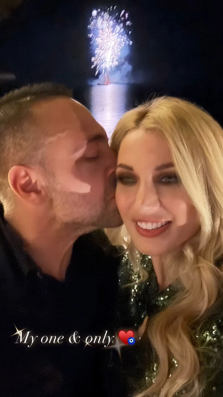 Η παρουσιάστρια μοιράστηκε μέσω Instagram μια φωτογραφία όπου ο σύζυγός της τη φιλά στο μάγουλο, με φόντο τα πυροτεχνήματα της Πρωτοχρονιάς. Στη λεζάντα, έγραψε: “My one and only”.