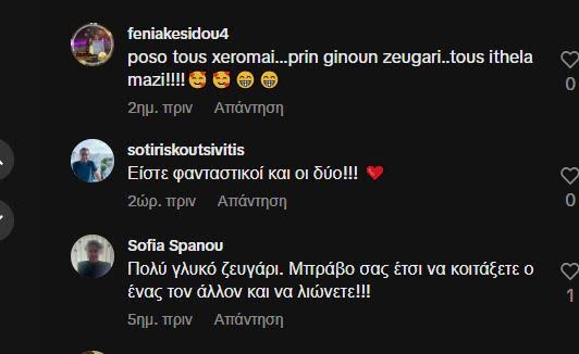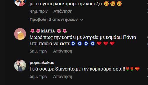 Οι θαυμαστές που παρακολουθούν τα πάντα τους αποθέωσαν! Έγραφαν τι ταιριαστό ζευγάρι και άλλα εύστοχα σχόλια όπως: «Το πιο γλυκό ζευγάρι», «Την κοιτάζει και λιώνει, φτου φτου πάντα έτσι να είστε», «Έναν σαν τον σταβέντο θέλω να βρω», «Μπράβο σας μετά από τόσα χρόνια υπάρχει η ίδια σπίθα στα ματια», «Κορίτσια ααα 1 τέτοιο άντρα”.