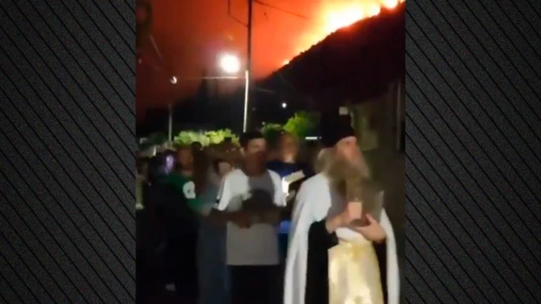 - Κάτοικοι του χωριού προεξάρχοντος του ιερέα βγήκαν στους δρόμους κρατώντας ιερές εικόνες και λείψανα προσευχόμενοι για να μπει τέλος στον πύρινο εφιάλτη.