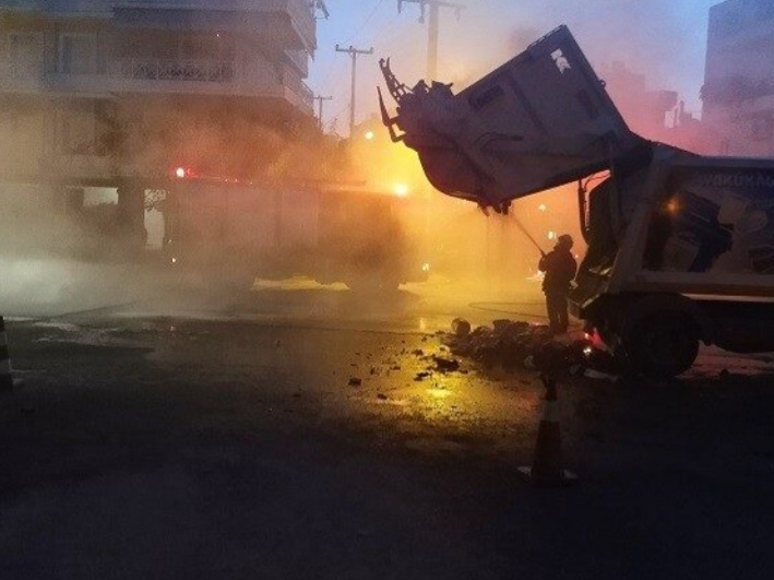 Χάρη στην έγκαιρη επέμβαση των εργαζομένων, η πυρκαγιά δεν επεκτάθηκε σε σταθμευμένα οχήματα και παρακείμενα κτίρια, ενώ για την κατάσβεση της φωτιάς έσπευσαν δυνάμεις της Πυροσβεστικής.