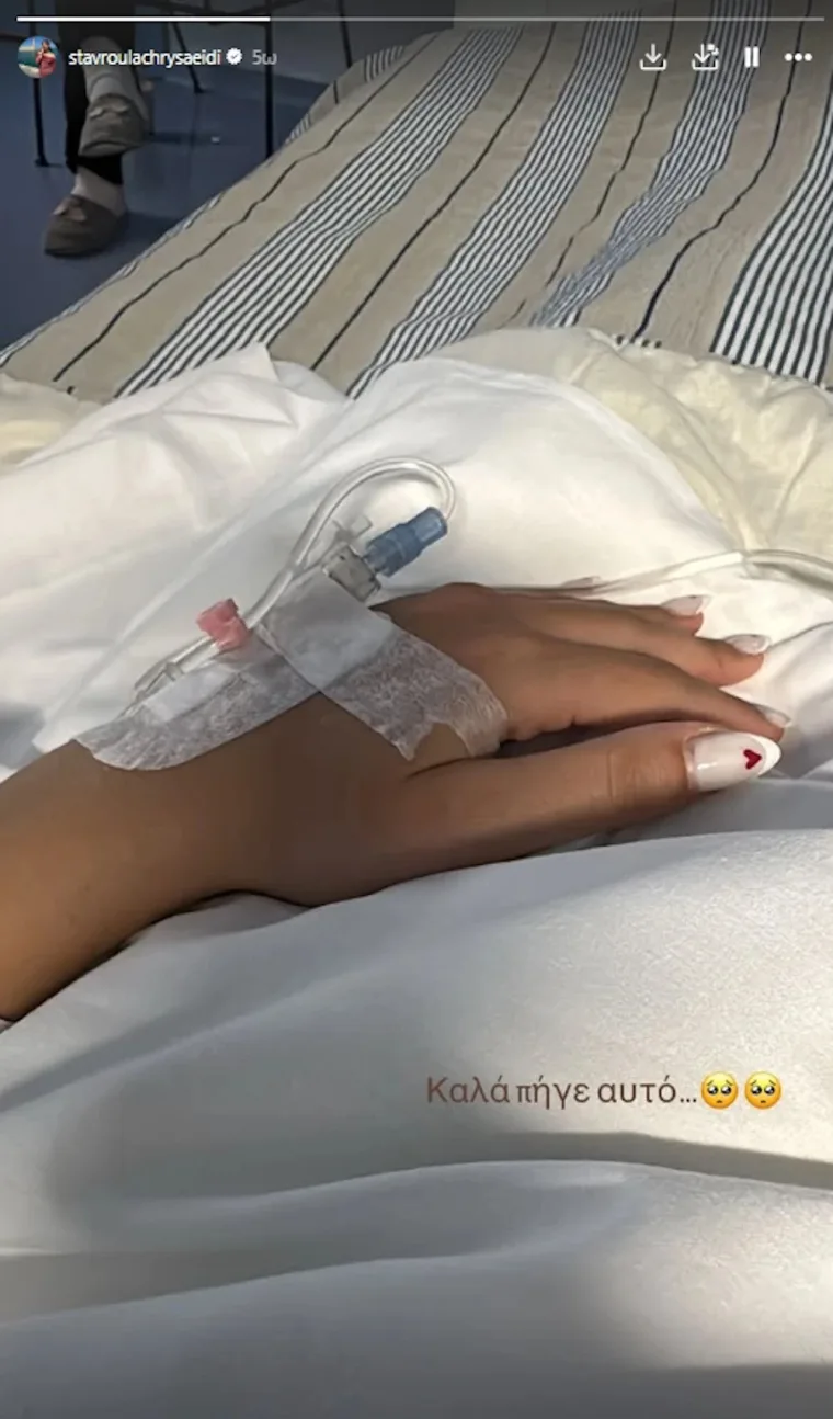Στο νοσοκομείο βρίσκεται η Σταυρούλα Χρυσαειδή όπως έκανε γνωστό με φωτογραφία που μοιράστηκε μέσα από τον προσωπικό της λογαριασμό στο Instagram.