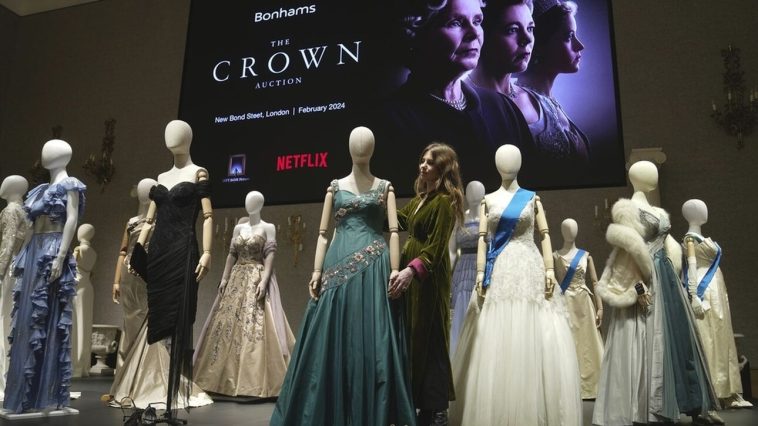 Από μια ρέπλικα του επίσημου ενδύματος που φορούσε η βασίλισσα Ελισάβετ στην τελετή ενθρόνισής της έως ένα αντίγραφο της κλειστής άμαξας της βασιλικής οικογένειας, κοστούμια και αντικείμενα από τη βραβευμένη δραματική σειρά «The Crown» θα παρουσιαστούν στο Λονδίνο αυτήν την εβδομάδα προτού βγουν στο σφυρί. Περισσότερα από 450 αντικείμενα από το σόου του Netflix, το οποίο επικεντρώθηκε στη βασιλεία της Ελισάβετ, θα παρουσιάσει ο οίκος δημοπρασιών Bonhams από την επόμενη Πέμπτη, ενόψει της δημοπρασίας «The Crown Auction», που θα πραγματοποιηθεί στις 7 Φεβρουαρίου. Η επιτυχημένη σειρά ολοκληρώθηκε τον περασμένο μήνα έπειτα από 6 σεζόν, κατά τη διάρκεια των οποίων οι ηθοποιοί Κλερ Φόι, Ολίβια Κόλμαν και Ιμέλντα Στόντον υποδύθηκαν την Ελισάβετ σε διαφορετικές περιόδους της βασιλείας της.