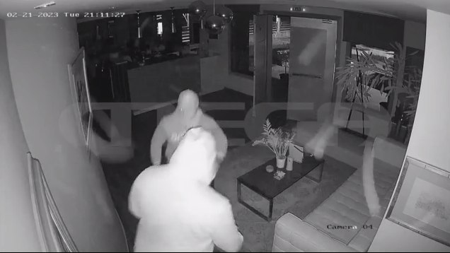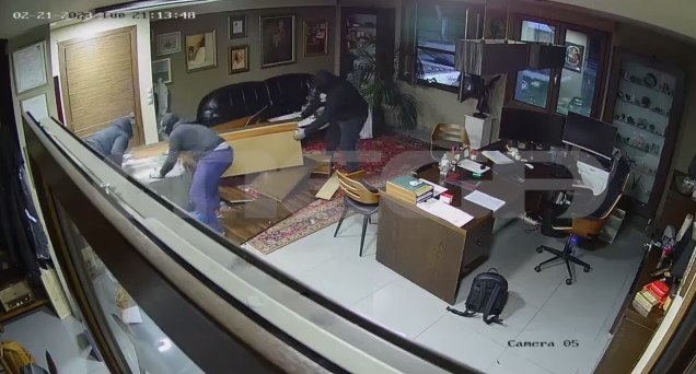 Στα βίντεο που παρουσίασε αποκλειστικά το MEGA, φαίνεται αρχικά ένα λευκό όχημα να πλησιάζει έξω από την επιχείρηση στις 21:08, κάνει όπισθεν και αλλάζει πορεία προς τα δεξιά, όπου και σταθμεύει λίγο πιο κάτω. Ένα λεπτό αργότερα εμφανίζονται τρεις άντρες να μπαίνουν στην αυλή της επιχείρησης προσπαθώντας να ανοίξουν την πόρτα της εισόδου. Δύο σκύλοι τους έχουν ακολουθήσει γαυγίζοντας, αλλά δεν στέκονται εμπόδιο για εκείνους.