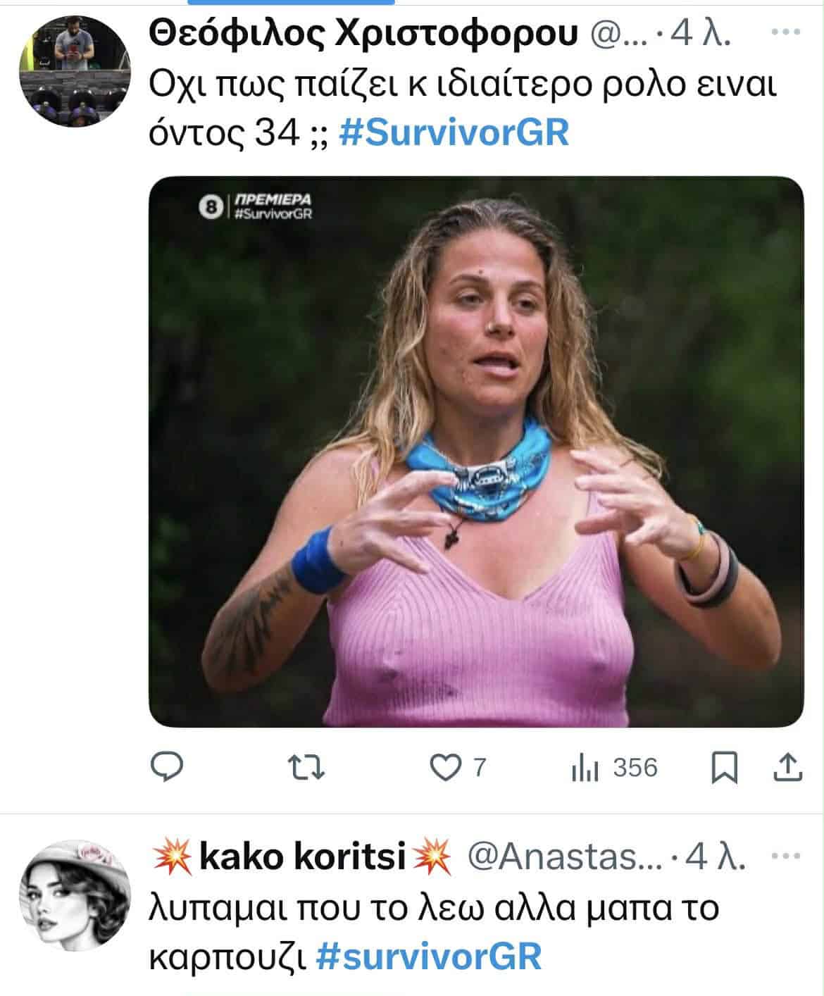 - Όλα ανακατεμένα. Μία δείχνει την καλύβα, μία τα αγωνίσματα, συνεντεύξεις, ο καθένας να προβάλλει τον εαυτό του και να συστήνεται στο κοινό, και πάρα πολύ κλάμα — κυρίως από τους άντρες.