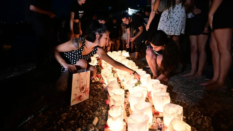 Οι συγγενείς διάβασαν τα ονόματα των νεκρών στην παραλία και απελευθέρωσαν κόκκινα μπαλόνια, ενώ έφτιαξαν και φαναράκια τα οποία έβαλαν στη θάλασσα.