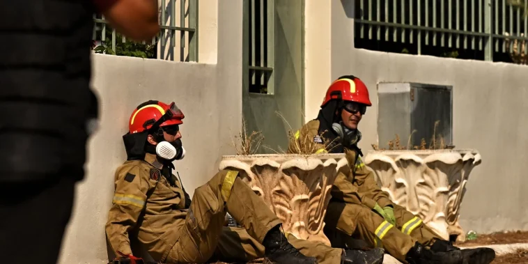 Ο φακός του Γιάννη Ψωμά, από το πρακτορείο φωτογραφιών Intimenews, «έπιασε» μια συγκλονιστική στιγμή που αποτυπώνει την κούραση και την υπεράνθρωπη προσπάθεια που καταβάλλουν τις τελευταίες ώρες οι πυροσβεστικές δυνάμεις της χώρας προκειμένου να κατασβήσουν τα ενεργά μέτωπα.