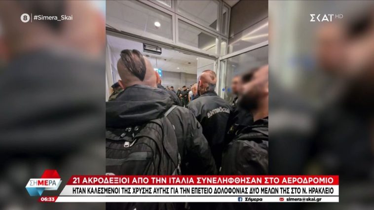 Συνελήφθησαν το βράδυ της Τρίτης 21 ακροδεξιοί Ιταλοί στο αεροδρόμιο “Ελευθέριος Βενιζέλος”.