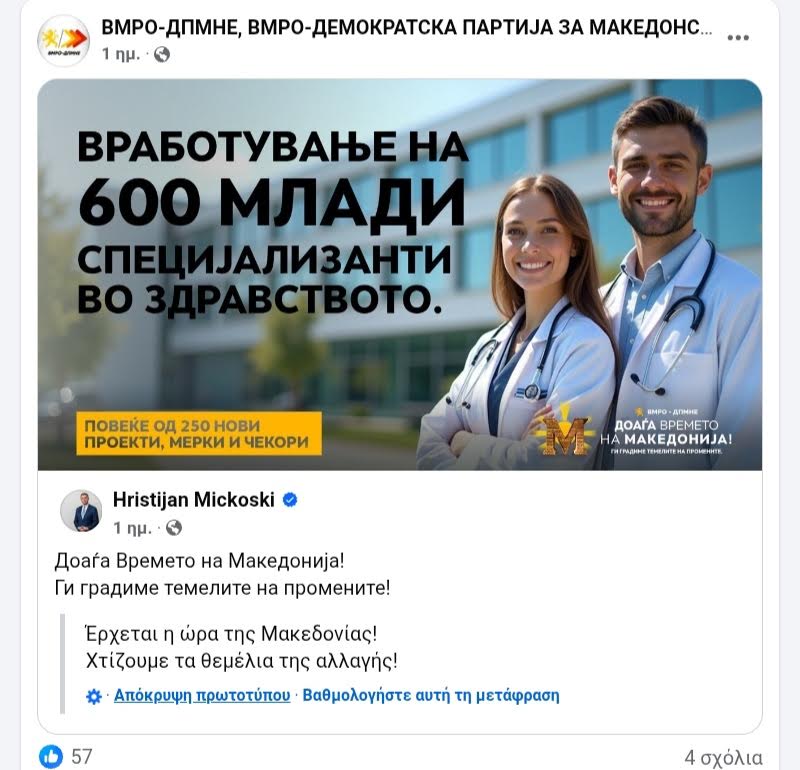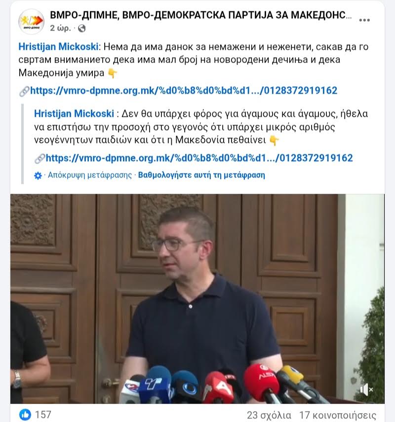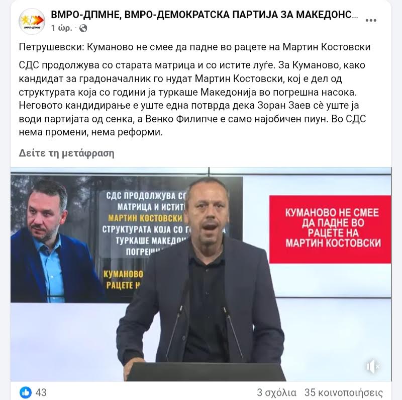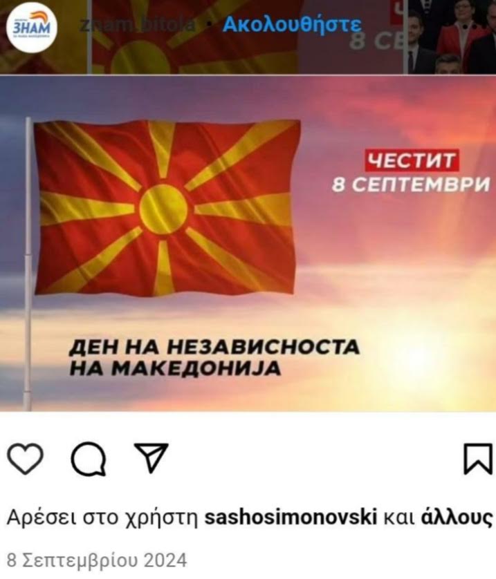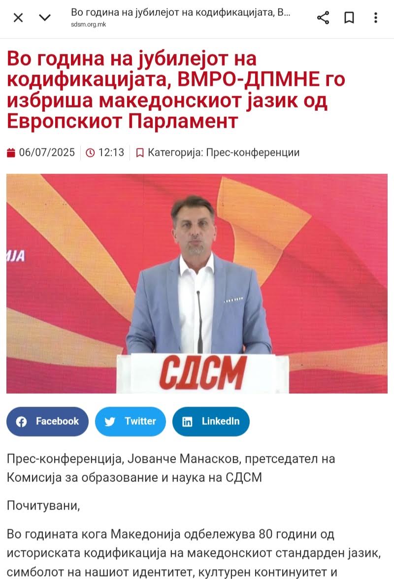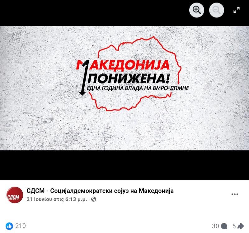 - Αυτήν την φορά, μετά την πρόθεση μετονομασίας της Κρατικής Ομοσπονδίας Καλαθοσφαίρισης σε “Μακεδονική”, ο πολιτικός κόσμος της χώρας αποδεικνύει μέσα από αναρτήσεις στα Μέσα Κοινωνικής Δικτύωσης και σε επίσημες κομματικές ιστοσελίδες, ότι δεν τηρεί τα όσα έχουν υπογραφεί για την χρήση των όρων “Μακεδονία””(“Македонија”) και “Δημοκρατία της Μακεδονίας”(“Република Македонија”) εσωτερικά.
