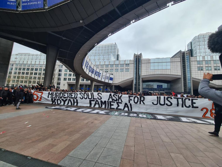 Αιφνιδιαστική κινητοποίηση από οπαδούς του ΠΑΟΚ έξω από το κτίριο του Ευρωπαϊκού Κοινοβουλίου με πανό και συνθήματα για το έγκλημα των Τεμπών. Ο «Δικέφαλος του Βορρά» αγωνίζεται σήμερα στη βελγική πρωτεύουσα εναντίον της Μπριζ για τα προημιτελικά του Conference League και μια ομάδα των υποστηρικτών του αποφάσισε να προχωρήσει σε διαμαρτυρία. Βασικά συνθήματα «καμία ειρήνη χωρίς δικαιοσύνη» και «στο όνομα των νεκρών να γίνουμε φωνή, το έγκλημα αυτό να μην συγκαλυφθεί», αλλά και υβριστικά συνθήματα κατά του πρωθυπουργού.