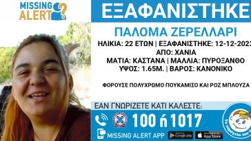 Μια γυναίκα 44 ετών εξαφανίστηκε αυτή την εβδομάδα από τα Χανιά της Κρήτης, αναφέρει το «Χαμόγελο του Παιδιού». Πρόκειται για την Maritu Adere Takalegn, που εξαφανίστηκε τις απογευματινές ώρες της Τρίτης 9 Ιουλίου. Έχει ύψος 1.65 μ., κανονικό βάρος, μαύρα μάτια και μαύρα μαλλιά. Την ημέρα που εξαφανίστηκε φορούσε λευκό πουκάμισο, παντελόνι τζιν και λευκά αθλητικά παπούτσια μάρκα adidas. Το «Χαμόγελο του Παιδιού» ενημερώθηκε για την εξαφάνιση της σήμερα και προχώρησε στη δημοσιοποίηση των στοιχείων της ενήλικης κατόπιν εισαγγελικής εντολής, καθώς συντρέχουν λόγοι οι οποίοι θέτουν τη ζωή της σε κίνδυνο. Οποιοσδήποτε έχει κάποια πληροφορία, παρακαλείται να επικοινωνήσει τηλεφωνικά με «Το Χαμόγελο του Παιδιού» όλο το 24ωρο, στην «Εθνική Γραμμή για τους Αγνοούμενους Ενήλικες – 1017», σε όλα τα Αστυνομικά Τμήματα της χώρας αλλά και μέσω της εφαρμογής Missing Alert app οπού υπάρχει ζωντανή ενημέρωση για την εξαφάνιση.