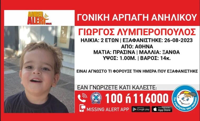 Κατόπιν εισαγγελικής εντολής, το «Χαμόγελο του Παιδιού» προχώρησε σήμερα 5/10/2023 στην ενεργοποίηση του μηχανισμού AMBER ALERT HELLAS, καθώς υπάρχουν ενδείξεις που υποδεικνύουν ότι πιθανόν η ζωή του παιδιού βρίσκεται σε κίνδυνο.