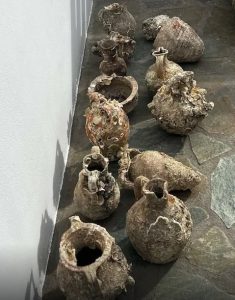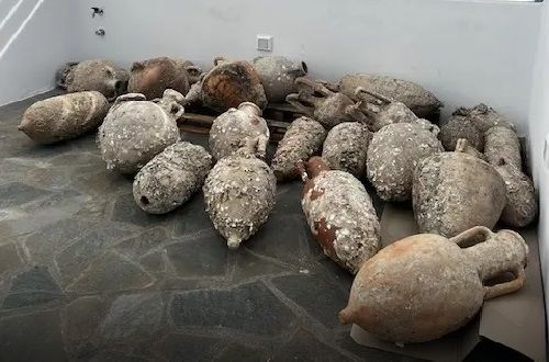 Ειδικότερα, μεσημβρινές ώρες χθες, έπειτα από αξιολόγηση πληροφοριακών στοιχείων πραγματοποιήθηκε στοχευμένη έρευνα στην οικία του, όπου παρουσία δικαστικού λειτουργού βρέθηκαν και κατασχέθηκαν: 23 αμφορείς διαφόρων σχημάτων, 2 πιθοειδή κυλινδρικά αγγεία, 7 αμφορίσκοι, 5 πρόχοι οινοχόες και ανοικτό μαγειρικό σκεύος.