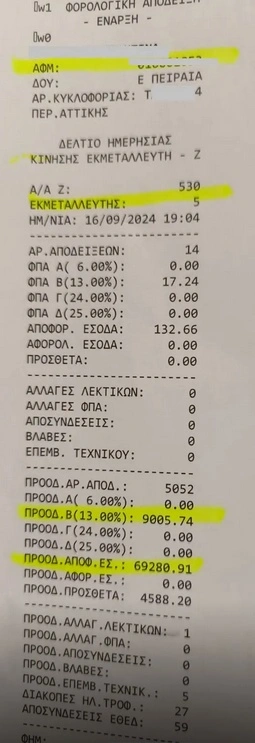 Ειδικότερα, ο 49χρονος οδηγός του ταξί, το οποίο, του είχε παραχωρηθεί από τον ιδιοκτήτη του, κατηγορείται ότι είχε πραγματοποιήσει παραβίαση της σφραγίδας του ταξιμέτρου και επέμβαση στο λογισμικό του με αποτέλεσμα να εκδώσει συνολικά άνω των -5.000- φορολογικών αποδείξεων, χρησιμοποιώντας εικονικό Αριθμό Φορολογικού Μητρώου (Α.Φ.Μ.).