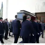 - Η μητέρα του, εμφανώς καταρρακωμένη, αποχαιρέτησε τον μονάκριβο γιο της σε μια από τις πιο δύσκολες στιγμές της ζωής της. Το κλίμα ήταν ιδιαίτερα φορτισμένο, με την οικογένεια να βιώνει μια απώλεια που δεν χωρά λόγια. Δίπλα στο φέρετρο στάθηκαν ο γιος του εκλιπόντος, Δημήτρης, και η σύντροφός του, Μαρία, αποχαιρετώντας τον με αξιοπρέπεια και σιωπηλή οδύνη.