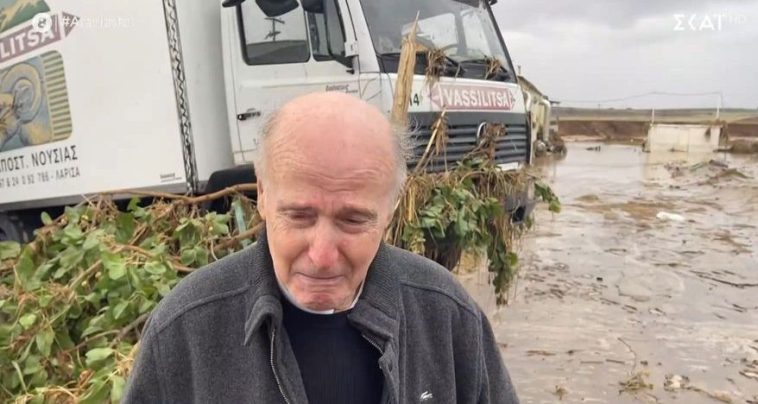 Τυροκόμος στη Λάρισα, ξεσπάει σε λυγμούς, καθώς η επιχείρησή του, στη Νέα Λεύκη, έχει υποστεί ολική καταστροφή, από την κακοκαιρία Daniel, με τη ζημιά να ανέρχεται σε περίπου 12 εκατ. ευρώ. Η επιχείρηση του Απόστολου Νούσια ξεκίνησε πριν από 74 χρόνια και χτίστηκε κομμάτι κομμάτι, ώστε να μην χρεωθούν στις τράπεζες με δάνεια.