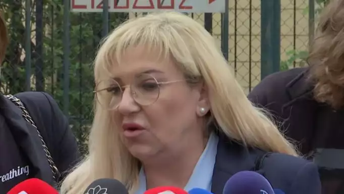 Εξερχόμενη από την Ευελπίδων, η χήρα του Γιώργου Καραϊβάζ μίλησε στις τηλεοπτικές κάμερες, δηλώνοντας:
