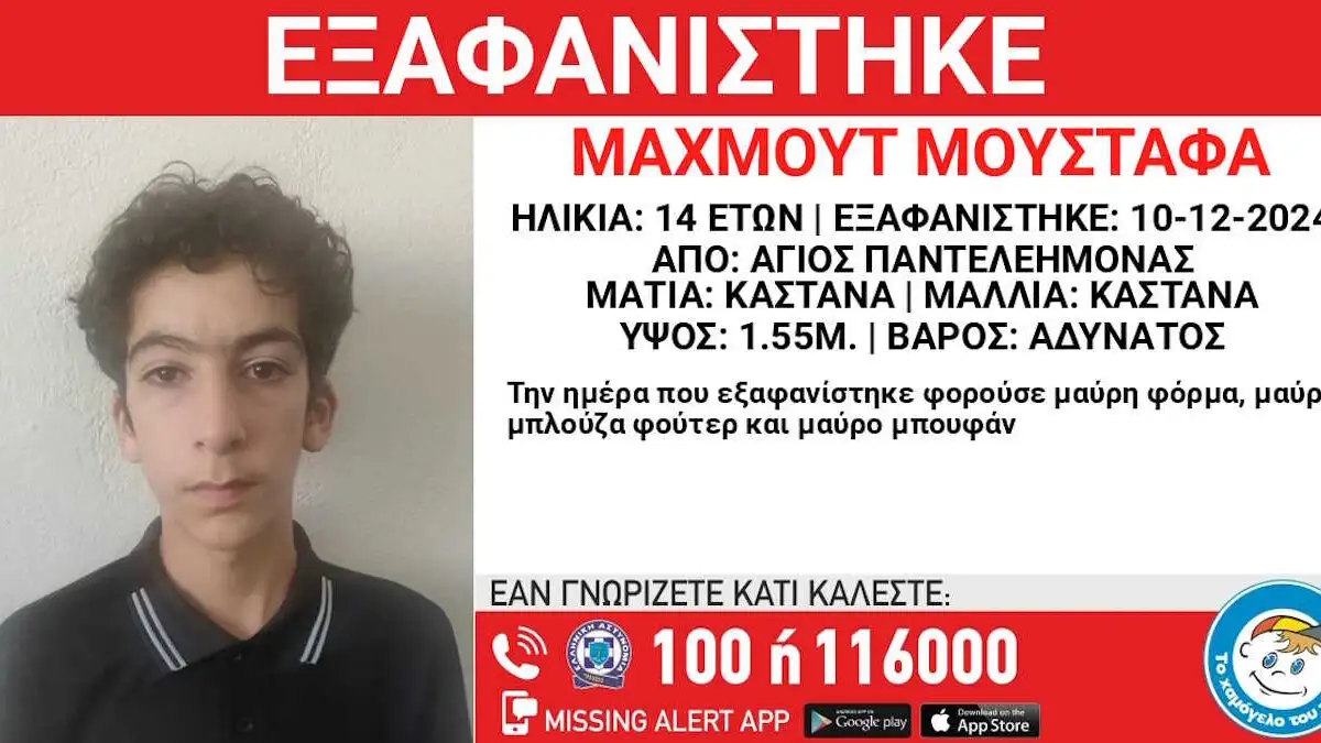 Εξαφάνιση 14χρονου από τον Άγιο Παντελεήμονα