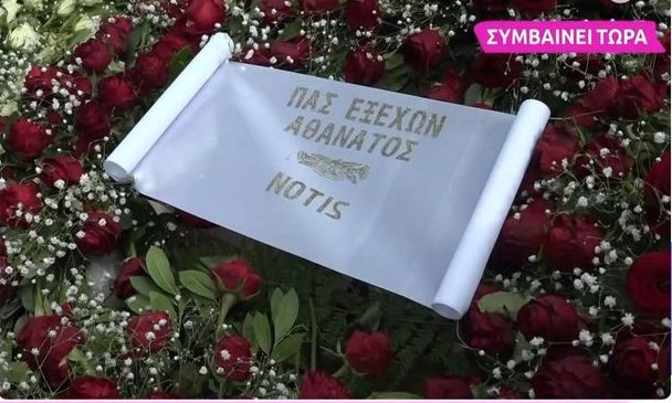 Αυτήν την ώρα φίλοι και συγγενείς αποχαιρετούν τον Αλέξη Κούγια. Το στεφάνι του Νότη…