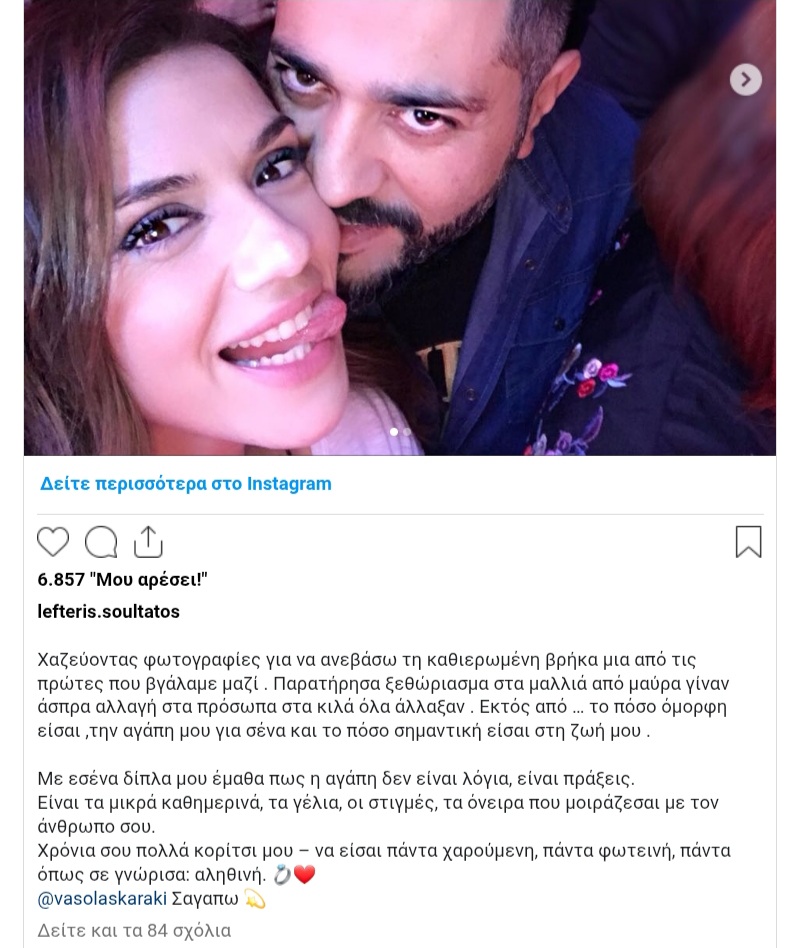 Μια συγκινητική ανάρτηση αφιέρωσε ο Λευτέρης Σουλτάτος στη σύζυγό του, Βάσω Λασκαράκη με αφορμή…