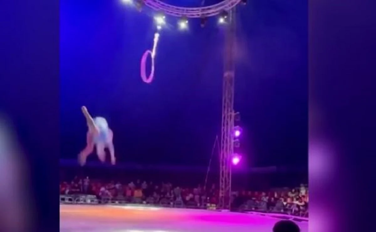 Αυτή είναι η σοκαριστική στιγμή που μια ακροβάτισσα πέφτει από εναέριο στεφάνι και χτυπά…