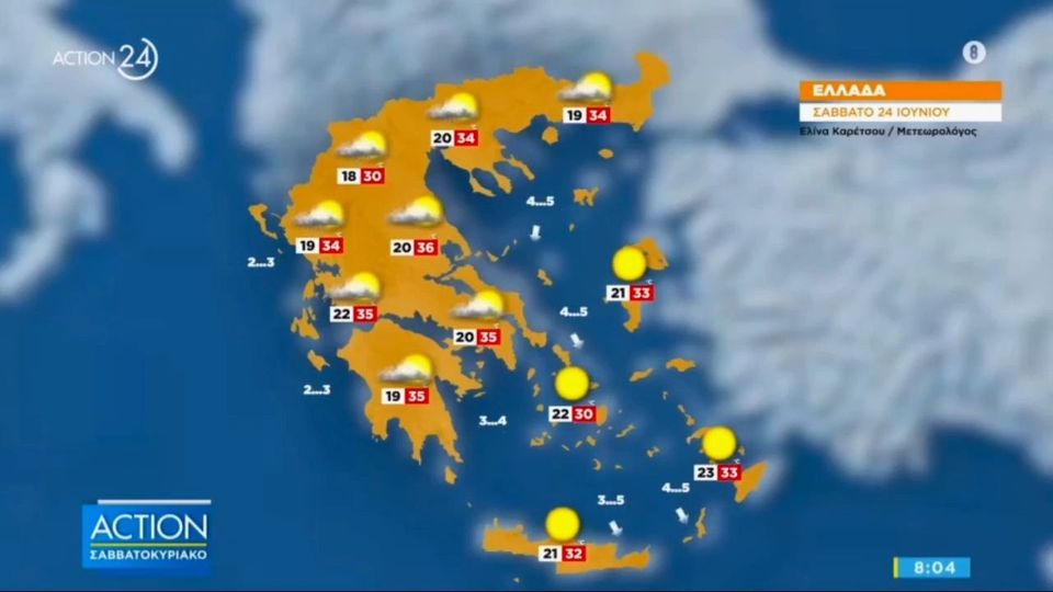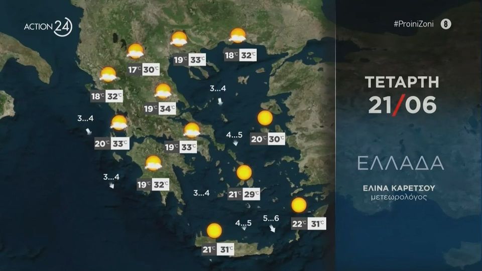 Ο καιρός σήμερα παραμένει καλοκαιρινός... με ηλιοφάνεια σε όλη την επικράτεια με την εικόνα…