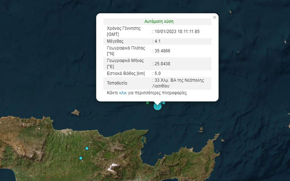 Σεισμός 4,1 Ρίχτερ ανοιχτά της Κρήτης