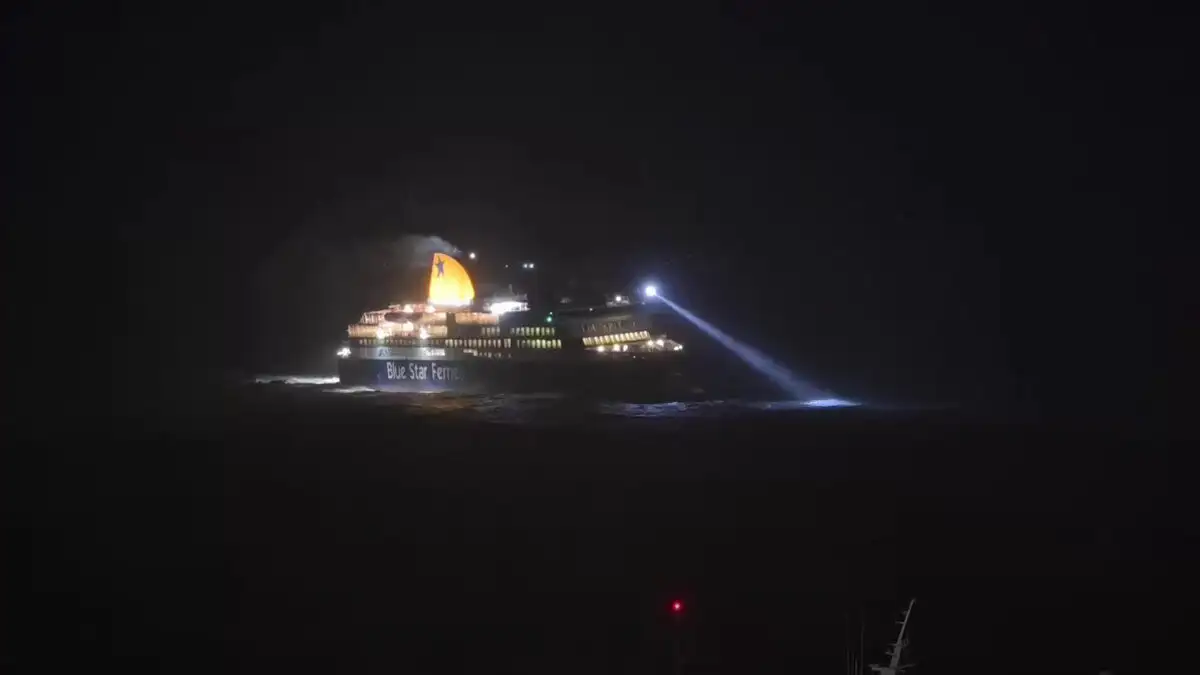 Νάξος – Η στιγμή που καπετάνιος ανάβει προβολέα για να δέσει το πλοίο. Ο φάρος ήταν σβηστός