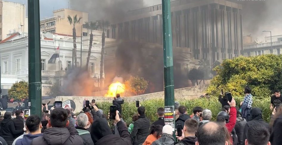 Ντροπή σας παράσιτα – Η στιγμή της επίθεσης των κουκουλοφόρων με μολότοφ στην Βουλή