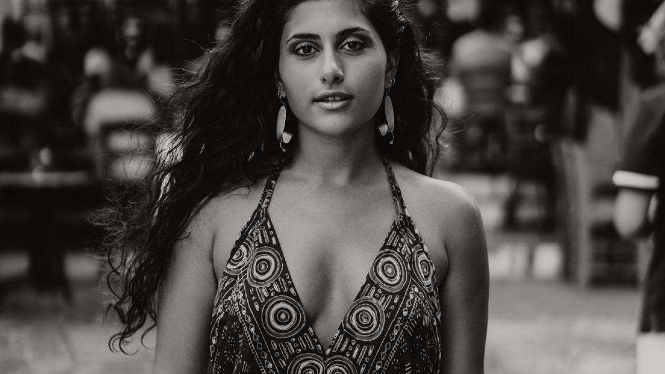 Η Μαρίνα Σπανού με μαύρο μπικίνι και λαμπερό χαμόγελο σε παραλία της Τήνου