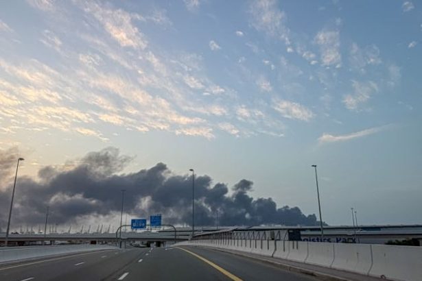 Σοβαρές εξελίξεις στο λιμάνι Τζεμπέλ Άλι Μαύροι καπνοί υψώνονται από το λιμάνι Τζεμπέλ Άλι…