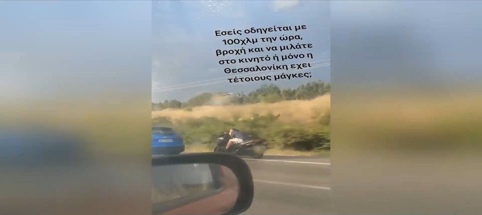“Μάγκας” οδηγός στην Θεσσαλονίκη – Τρέχει με μηχανή χωρίς κράνος και μιλά στο κινητό (Βίντεο)