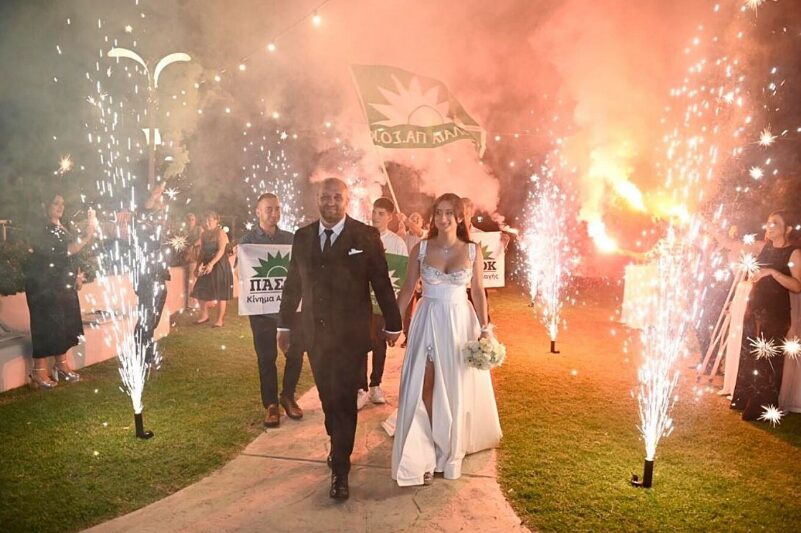 Εντυπωσιακός γάμος με άρωμα… ΠΑΣΟΚ -Μπήκαν με το «Καλημέρα ήλιε» και σημαίες