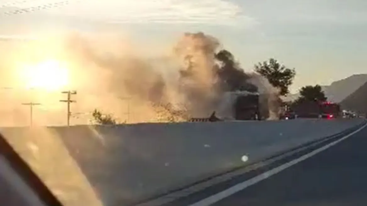 Φωτιά ΤΩΡΑ σε φορτηγό εν κινήσει στην Πατρών-Κορίνθου (βίντεο)