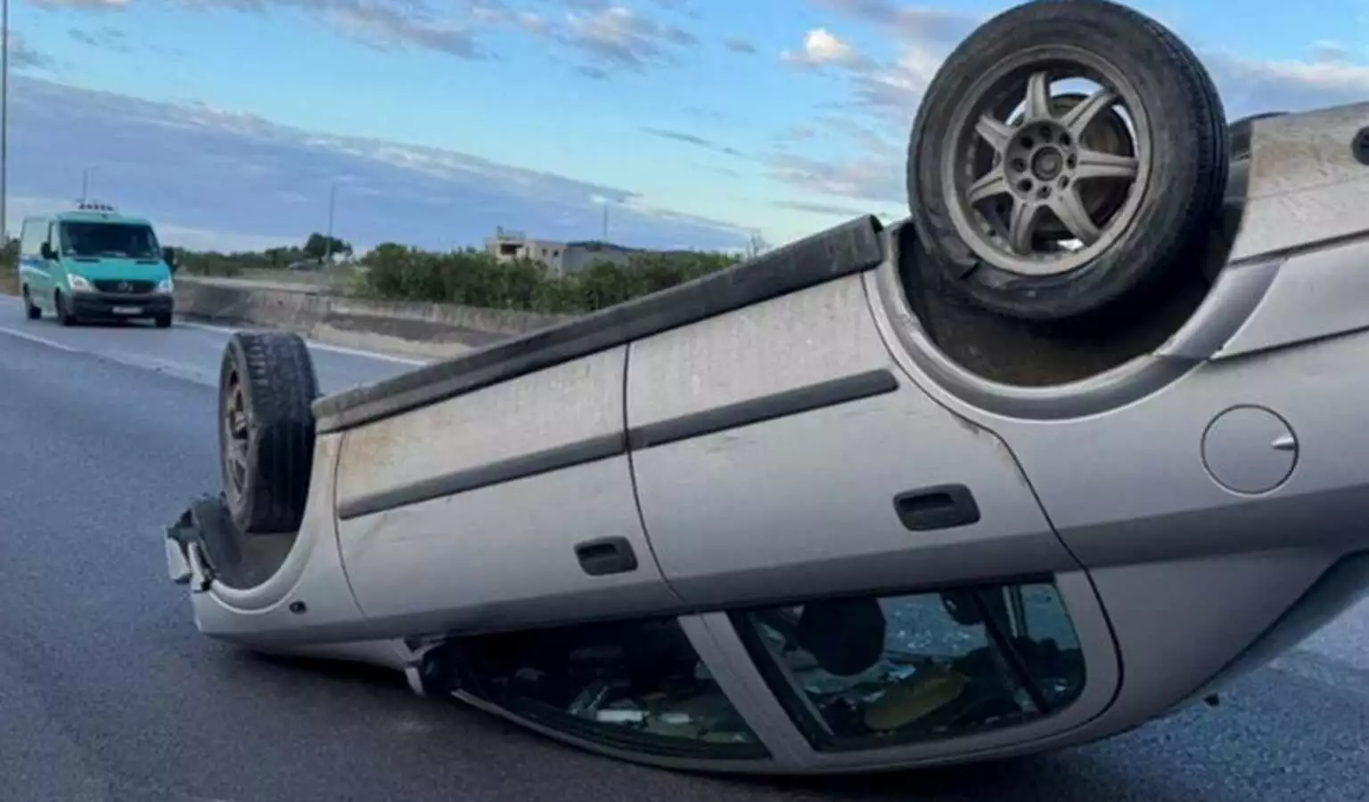 Χαλκιδική ΤΩΡΑ – Τροχαίο με ανατροπή αυτοκινήτου στην εθνική οδό Θεσσαλονίκης – Νέων Μουδανιών