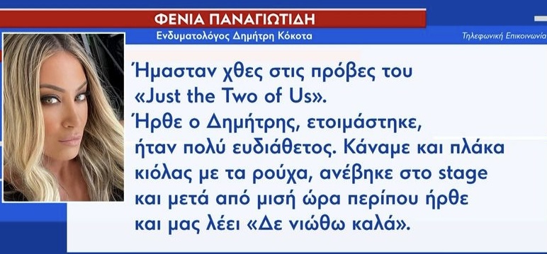 Φένια Παναγιωτίδη – «Μπροστά στα μάτια μου ο Δημήτρης Κόκοτας κατέρρευσε και…»