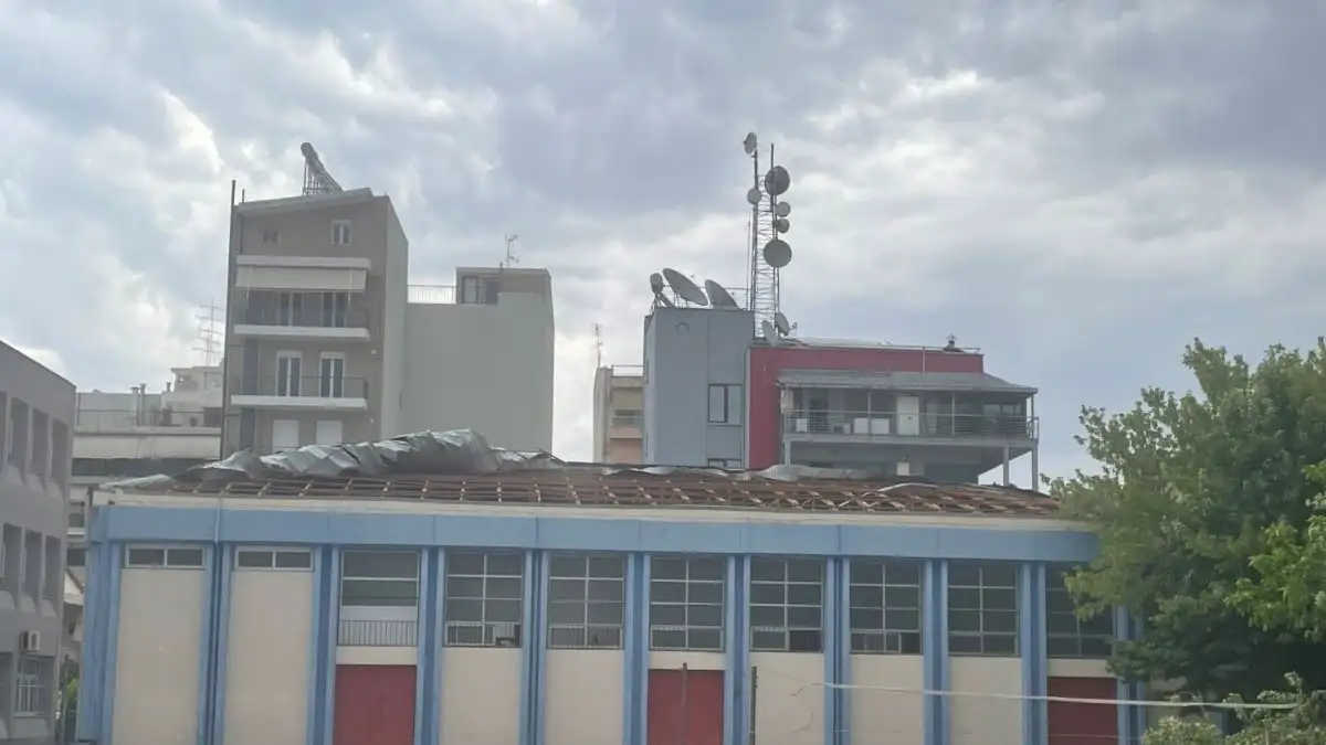 Λάρισα ΤΩΡΑ – Σάρωσε ο δυνατός αέρας και ξήλωσε το σκέπαστρο του 5ου Γυμνασίου